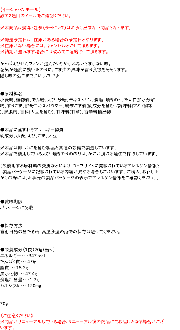 カルビー かっぱえびせんごま油香るのりしお味70g ×12個 はコチラ >>【イージャパンショッピングモール】内のみのお買い物は、送料一律でどれだけ買っても同梱する事が出来ます。
